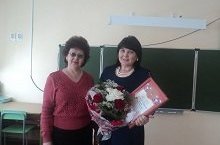 Хезмәттәшебезне юбилее белән котлап, район мәгариф бүлегенннән Кәлимуллина Зөлфия Рифовна да килде.