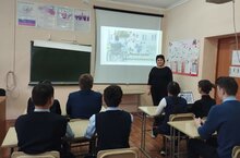 "Туган телем сагында" акциясе кысаларында 5 нче класс укучылары белән "Туган ягым - Татарстан" презентациясен карап сорауларга җавап бирдек.