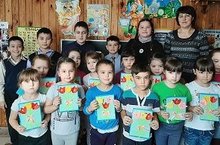 Әниләребезгә үзебезнең нәни кулларыбыз белән, зур тырышлык куеп, чын күңелдән бүләккә чәчәкләр ясадык.