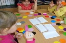 Балаларны түгәрәк һәм овал формадагы өлешләрне кисү кунекмәләрен эшкәртуне дәвам итү , (яфрак) киселгән өлешләрдән сурәт төзергә өйрәтү