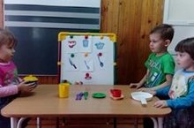Материал: магнитная доска, предметные рисунки, волшебный мешочек, муляжи, рабочая тетрадь.