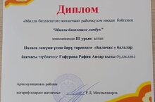 "МИЛЛИ БИЗӘЛЕШТӘГЕ КИТАПЧЫК" районкүләм иҗади бәйгенең "Милли бизәлешле лепбук" юнәлешендә 3 урын алган 1 кв.категорияле тәрбиячебез Гафурова Р.А. чын күңелдән котлыйбыз.Алдагы бәйгеләрдә зур уңышлар теләп калабыз!!!