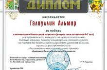 Республиканский конкурс «Новогодняя поделка по БДД». Поздравляем нашего воспитанника Галиуллина Альмира.