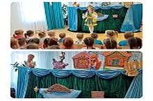 Сегодня артисты кукольного театра "Алина" показывали музыкальную сказку с большими куклами.Детям очень понравилась, они все довольные и радостные.