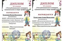 Очередные призовые места наших воспитателей в республиканском конкурсе "Дошкольник в мире профессий".Поздравляем!