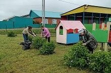 Бакча территориясендәге куакларны карап, чистартып, кисеп куйдык.