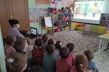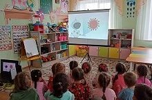 С детьми старшей группы смотрели видеоролики на тему "Осторожно! Ковид-19!"