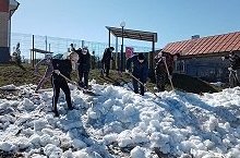 Бакчабызда эшләүче барлык хезмәткәрләр зур тырышлык белән өмәдә катнаштык.Бакча территориясендәге карны тараттык, тырмаладык, булган чүп-чарны җыйдык.