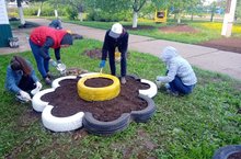 Чәчәклек 16.05.2019 Мәктәп янын матурлау дәвам итә. Чәчәклектә эш гөрли.