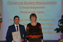 Татарстан Республикасының Хезмәт, мәшгульлек һәм социаль яклау министрлыгы үткәргән “Киләчәккә билет” исемле сочинениеләр конкурсында 8 класс укучысы Хөсәенов Булат Диплом һәм исемле приз белән бүләкләнде