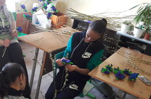 Җиңү бәйрәменә әзерлек эшләре бара. Укучылар парадка барырга чәчәкләр ясыйлар.