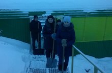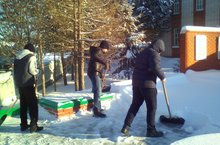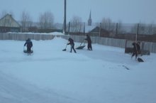 Хоккей мәйданчыгын чистарту. 18.01.2016 Атна дәвамында карлар күп яуды, укучылар һәркөнне дәресләрдән соң хоккей мәйданчыгын кардан чистарталар.