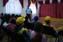 В связи с Днем безопасности для учащихся лагеря была проведена встреча с сотрудником ГИБДД Гарифуллиным Радисом Мансуровичем. Он рассказал о правилах безопасности для пассажиров, велосипедистов, пешеходов.