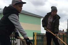 Барлык балалар да, мәктәп территориясен тәртипкә китерү өчен, бердәм рәвештә өмәгә чыктылар . Ишек янындагы клумбаларга чәчәкләр утырттылар, куакларны тәртипкә китерделәр, теплицаларга үсентеләр әзерләделәр һәм утырттылар.