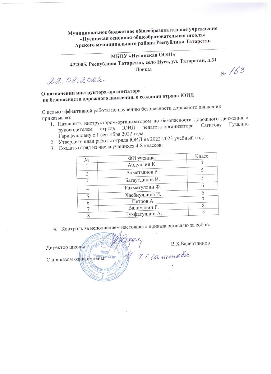 План работы отряда юных инспекторов движения МБОУ "Нусинская ООШ"
