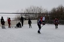 Бүген мәктәп укучылары һәм зурлар үзара хоккей уйнадылар.