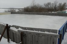 Хоккей мәйданчыгы уйнар өчен әзер. Укучылар укулар беткәч хоккей уйныйлар.