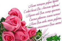 Хөрмәтле әниләребез, әбиләребез, хатын-кызларыбыз, сөйгән ярларыбыз, апа-сеңелләребез, кызларыбыз һәм оныкларыбыз. Бүгенге көндә сезнең хезмәтегез, бу дөньяда тоткан урыныгыз гаять зур! Ир-атларга сездән күп өлкәләрдә өйрәнергә дә өйрәнергә кирәк! Сезне шушы матур бәйрәмегез белән тәбрик итәм, сәламәтлек, шатлык-бәхет, уңышлар телим! Бу котлау сүзләрен укып чыгып кына калмагыз, якын кешеләрегезне, әбиләрегезне, әниләрегезне, сөеклеләрегезне, апа-сеңелләрегезне, кызларыгызны бәйрәм белән котлап чыгыгыз. Һәм бу хис-теләкләрегез елның башка көннәрендә дә сүнмәсен, сүрелмәсен!
