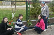 Мәктәп бакчасында төрле сортлы тюльпаннар үсә. Биология укытучысы Мостафина Гөлүзә Бариевна 9 класс кызларын тюльпан үстерү серләренә өйрәтә.
