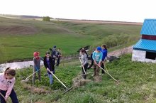 Укучыларыбыз бик теләп үзебезнең буа янын чистарттылар.