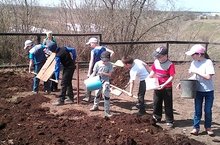Бакчада язгы эшләр башланды. Бүген мәктәптә өмә үтте. Мәктәп яны тәҗрибә участогына чермә керттек. Бергәләп эшләве күңелле. Күмәк эш тиз үрчи. Бүген эшләгән эшебездән канәгать калдык.