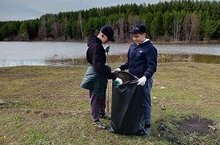 Ученики и учителя нашей школы активно приняли участие в работе по очистки береговой зоны водохранилище села Нуса.