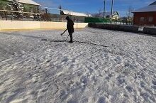 Боз катыру тулы көчкә эшли. Бүгеннән башлап хоккей коробкасында су сибү(боз катыру) буенча эшләр башланып китте. Зур класс укучылары бик теләп бу эштә катнашалар.
