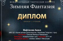 Поздравляем обучающихся класса вокал преподавателя Сагитовой Миляушы Рамазановны с успешным выступлением в Международном творческом конкурсе "Зимняя фантазия".