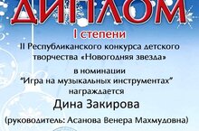 Поздравляем обучающуюся музыкального отделения (класс "фортепиано") Детской школы искусств - Закирову Дину (преп. Асанова В.М.@venera_asanova_m ), ставшую дипломантом I степени во II Республиканском детском конкурсе "Новогодняя звезда" в г.Мамадыш.