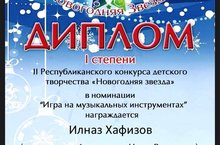 Поздравляем обучающегося народного отделения (класс "Баян") Детской школы искусств Хафизова Ильназа (преподаватель Фахрутдинова Н.Р. @nfakhrutdinov ) с дипломом I степени в номинации "Баян" II Республиканского конкурса детского творчества "Новогодняя звезда" в г. Мамадыш.