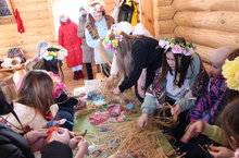 Стадионда беренче йортта масленица бәйрәменә багышланган мунчаладан курчаклар ясау буенча осталык дәресләре узды. Җитәкчесе Зөлфия Кочурова.