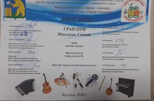 Гран-При - Мингазов Самат (баян), Закирзянов Карим (вокал-соло) - лауреат I степени (преподаватель Гайнуллин Булат Марселевич);