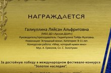 Арча балалар сәнгать мәктәбенең вокал бүлеге укучысы Галиуллина Ләйсән Халыкара "Золотое наследие" фестиваль-бәйгесендә (дистанцион, Санкт-Петербург шәһәре) беренче һәм өченче дәрәҗә лауреат дипломнарына лаек булды. Җитәкчесе Гидиятуллина Т.Ф.