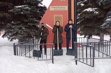 Студенты - добровольцы приняли участие в акции "Снежный десант", в рамках которой очистили от снега территорию стелы "Памяти павших" в посёлке Урняк.
