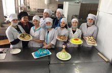 Студенты 4 курса "Технология продукции общественного питания" на занятиях учебной практики ПМ 04 "Приготовление хлебобулочных, мучных и кондитерских изделий".