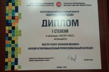обучающаяся группы №32 Минзина Зарина Саувановна в номинации "Приготовление полуфабрикатов" (руководители - Аскарова А.Д., Нуриева А.К.)