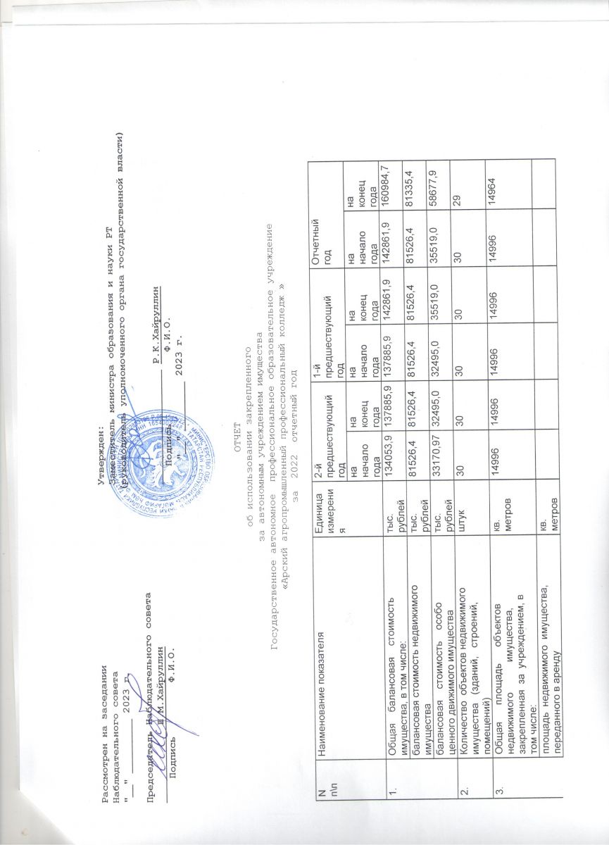 Отчет об использовании закрепленного за учреждением имущества за 2022 год