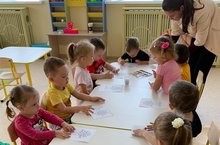 В младшую группу "Капелька" сегодня пришёл гость - мишка. Он принёс фрукты и рассказал, чем они полезны. Дети в ответ ему нарисовали рисунки. Таким образом, дети закрепили и расширили свои знания о фруктах и правильном питании как составной части сохранения и укрепления здоровья; а также познакомились с нетрадиционной техникой рисования - "тычок ватной палочкой".