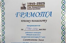 6 мая в нашем детском саду прошёл районный конкурс "Юный полиглот". Все участники были очень хорошо подготовлены и выступили достойно! Наша воспитанница Сагитзянова Зиля удостоилась Гран-при! Поздравляем ее и желаем дальнейших успехов! Молодец!