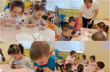 Бүген кече төркемдә балалар пирамида белән таныштылар, төсләрне кабатладылар, төсле кәгазьдән пирамида ясадылар.
