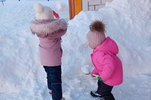 Дети средней группы "Солнышко" активно участвуют в уборке участка от снега. Педагоги учат их как разгребать снег лопатой на дорожках. После метелей обращают внимание детей на снежный покров, рассказывают о его значении в жизни растении зимой.