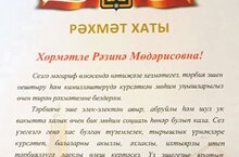 Бүген безнең тәрбиячебез Сәләхиева Рәзинә Мөдәрис кызын август киңәшмәсендә районыбызның башлыгы Илшат Габделфәртович Нуриевның рәхмәт хаты белән бүләкләделәр. Хезмәттәшебезне чын күңелдән котлыйбыз һәм киләчәктә тагын да зуррак уңышларга ирешүен телибез!
