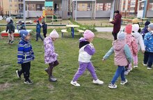 Воспитанники детского сада с удовольствием занимаются физкультурой на свежем воздухе.