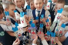 1 нче сыйныф укучылары «ЭКОяз» акциясенә актив кушылдылар, көнкүреш чүп-чарларын иҗади шедеврларга әйләндерделәр. Бер тапкыр кулланыла торган стаканнардан алар ачык һәм кызыклы сувенирлар — күңелле куяннар ясадылар. Һәрбер эшләнмә уникаль килеп чыкты: аңа йөзләр ясалды, муенсалар һәм кәгазь кисәкләре ябыштырылды. Балалар экологик акциядә катнашып кына калмадылар-алар матурлыкны гадәттә ташлап калдырган әйберләрдә күрергә өйрәнделәр. Мондый шөгыльләр күзаллауны, вак моториканы үстерә һәм кечкенәдән үк табигатькә тотрыклы мөнәсәбәт формалаштыра.