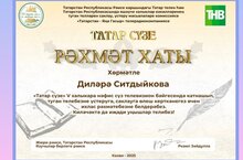 "Татар сүзе" V халыкара нәфис сүз телевизион бәйгесендә катнашып, туган телебезне үстерүгә, саклауга зур өлеш керткәне өчен лицеебызның 5 нче А сыйныфы укучысы Ситдыйкова Диләрә рәхмәт хаты белән бүләкләнде. Без Диләрәне чын күңелдән котлыйбыз. Аңа киләчәктә тагын да зуррак уңышларга ирешүен теләп калабыз.