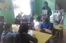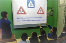 Юл йөрү кагыйдәләре турындагы белемнәрне ныгыту, урамда йөргәндә игътибарлы булырга өйрәтү, машина йөртүче, юл хәрәкәтен көйләүче хезмәткәр һөнәрләренә кызыксыну тәрбияләү максатыннан укучыларга тәрбия сәгате үткәрелде. Балалар юл билгеләре, светофор , транспорт чаралары, юлны аркылып чыгу турындагы белемнәрен искә төшерделәр.Табышмакларга җаваплар таптылар, “Юлда йөри беләсеңме?” дигән эчтәлекле, кызыклы презентация карадылар. -
