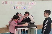 Мәктәбебездә хәрби–патриотик тәрбия айлыгы дәвам итә. Бүген укучылар, ике командага бүленеп, спорт ярышларында көчләрен сынаштылар. Соңыннан укучылар клубта бәйрәм белән котлап, концерт куйдылар. Әтиләренә үз куллары белән ясаган бүләкләрен тапшырдылар.