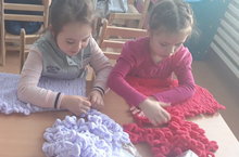 Те, кто знает, что представляет собой специальная пряжа с петельками для вязания руками Alize Puffy, считают, что справиться с ней сможет даже ребёнок. В этом действительно есть определенная доля правды, более того, дети способны и самостоятельно увидеть в данном занятии нечто увлекательное и необычное – то, что может принести пользу не только в виде конечного изделия. С помощью него можно развить внимание и концентрацию. Способ этот достаточно эффективный и доказанный с научной точки зрения. И если спицами вязать захочет не каждый ребёнок, то, используя специальную пряжу турецкого производителя Alize Puffy, привычное занятие можно превратить в исключительное и оригинальное. Манипулируя крупными петельками, можно развивать мозг и тренировать фокусировку внимания. Сегодня это особенно важно не только для детей, но и для взрослых. Сегодня вязать из пряжи Alize Puffy смогут не только девочки, данный монотонный процесс подойдёт и будущим мужчинам, которые, скорее всего, согласятся на подобное занятие, учитывая, что ни спицы, ни крючки в этом процессе не задействуются. Каждый ребенок мечтает преподнести своей мамочке самый лучший на свете подарок сделанный своими руками. Мы долго думали, что же подарить мамам на 8 марта и решили связать сидушку для стула. Вязание сидушки – работа простая, быстрая и интересная. Ребята подготовительной группы № 11 с большим интересом принялись за это дело. Они все справились с заданием, у всех получились красивые, оригинальные сидушки на стулья. Отличный подарок на 8 марта!
