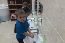 Каждого ребенка с детства необходимо приучить к навыкам личной гигиены. И первый из этих навыков призывает мыть руки перед едой. И не только перед едой, а также после нее, после посещения туалета, улицы, общественного транспорта, контакта с домашними и тем более бродячими животными. Существует целая категория заболеваний, именуемая «болезни грязных рук». Ведь именно на грязных руках с преогромным удовольствием живут и размножаются микроорганизмы, среди которых есть и болезнетворные. Попадая с поверхности кожи в человеческий организм, они могут спровоцировать недуг. Дети младшей группы №4 соблюдают и выполняют культурно-гигиенические навыки. Воспитанники понимают необходимость содержания своего тела в чистоте и бережного отношения к своему здоровью.