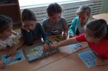 9 нчы номерлы мәктәпкә әзерлек төркеме балалары янә әкиятләр дөньясына чумдылар. Моңарчы яратып укылган татар, рус халык әкиятләрен, А. Алиш, А.С. Пушкин язган якиятләрне, күрсәтмә рәсемнәр кулланып, эчтәлекләрен сөйләделәр. Әңгәмә ахырында командаларга бүленеп, төрле әкияттән укылган өзекне танып, исемнәрен атадылар.